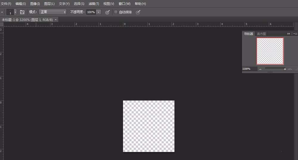 2、用快捷键CTRL+0将画布的显示调整到最大比例(在导航器面板上可以看到放大比例为3200%)。