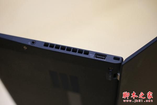 机身右侧则包括了1个USB3.0接口(支持关机充电功能)、1个音频输入输出接口和一个安全锁孔。作为一款机身只有正常12-13英寸大小的机器来说,这个接口配备的齐全性几乎无可匹敌。虽然配备更多接口使得设计、板料这些成本提高了不少,机身也会由此变得更重,但是对于相当一部分用户来说,相对齐全的接口非常有用,体现的依然是实用性至上的道理。