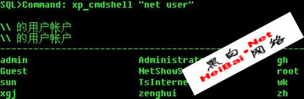 这样就留下后门了,看看是否填加了?输入:net user。哈哈,添加成功了,如图:
