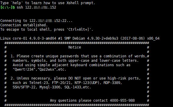 输入:ssh Debian的外网ip地址,输入用户名和密码登录
