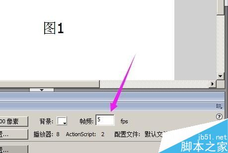 在舞台下方的属性面板中,把帧频设置为“5”;