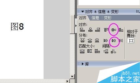 用“选择”工具把“大圆”全选,然后,在对齐面板,分别点”水平居中分布“和”垂直中齐“,如图8所示;