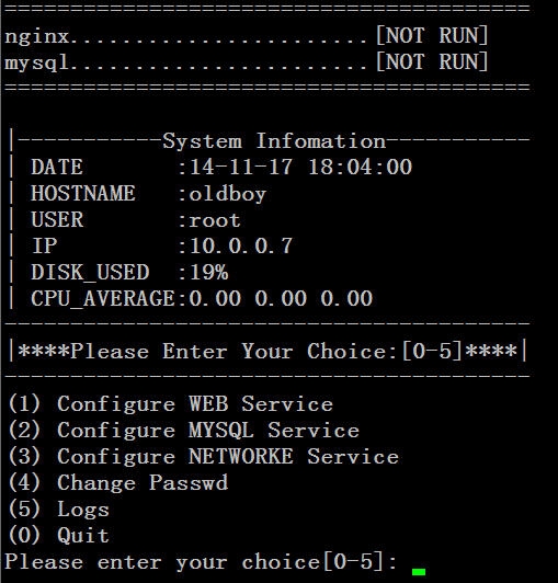 以上就是醉熏板栗最近收集整理的关于Shell实现多级菜单系统安装维护脚本实例分享的全部内容,更多相关Shell实现多级菜单系统安装维护脚本实例分享内容请搜索靠谱客的其他文章。