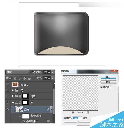 接下来使用圆角矩形工具新建图形,命名为“高光2”,使用渐变工具对其填色,其 余步骤与前面的步骤相同