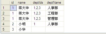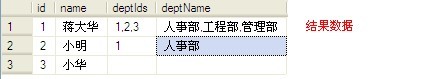 --此时已将员工表所存的IDS分别与部门相关联,下面需要将此集合中的deptName聚合成一个记录