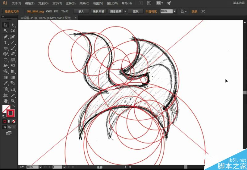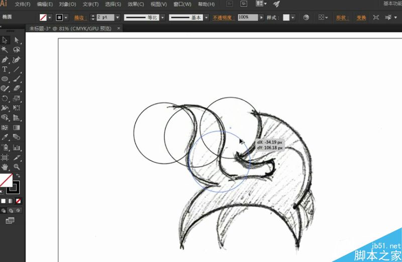 把所有的椭圆矩形对应好草图绘制好后,将描边改为红色与底部的草图拉开,从而能让图形线更为明显易于操作。