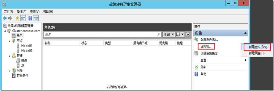打开群集管理器,点击角色,点击虚拟机—新建虚拟机