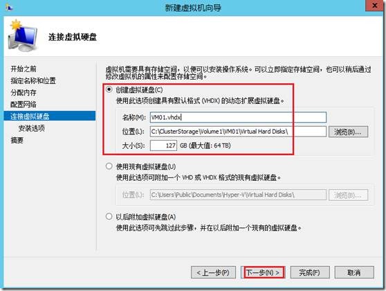 指定虚拟硬盘,并存储至群集共享盘中。
