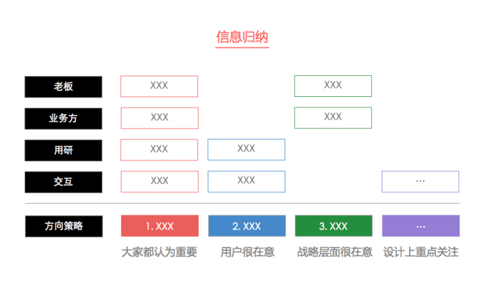 以上,我们分别介绍了在方向策略阶段获取四个核心信息来源的攻略,当你有效的获取了这些信息后,进入本环节的最后一个步骤——定论,通过信息聚类、分析讨论,输出最终的方向策略结论。并在结论输出后,与老板、产品/运营讨论迭代并确认。