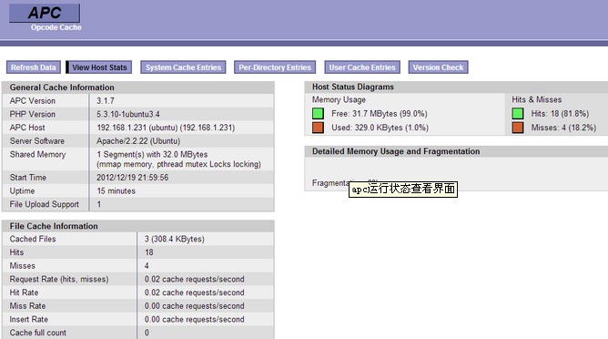 apc.php这个脚本可以查看apc的使用情况。界面如下: