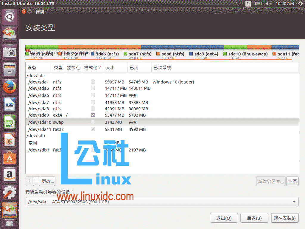 这里选择安装在 sda9,使用ext4格式。
