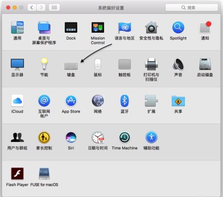 2、在系统偏好设置中,点击「键盘」图标,如下图所示。
