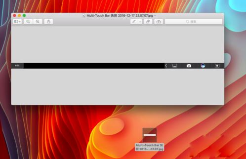5、当我们按下 shift+command+6 组合键时,便会对 Touch Bar 当前显示的内容进行截图,并自动存放到桌面上,如下图所示。