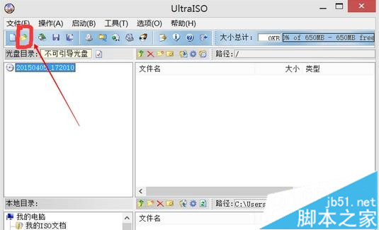 1、插入U盘,以管理员身份运行UltraISO,点击工具栏“打开”图标,选择win10 iso镜像文件;