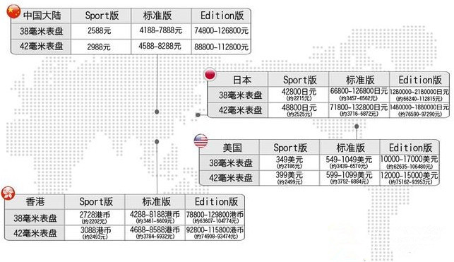 Apple Watch中/港/美/日价格明细对照 Apple Watch将会在4月24日正式发售,综合来看,中国香港地区的发售价格依然具有优势。下面就详情来看看吧