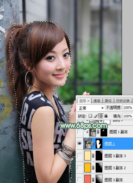 2、把背景图层再复制一层,按Ctrl + Shift + ] 置顶,用自己熟悉的方法把人物部分抠出来,如下图。