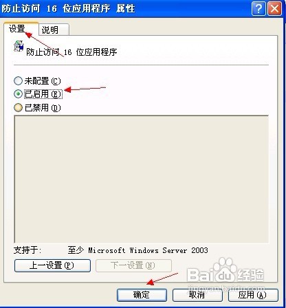在弹出的窗口单击“设置”选项卡,选择“已启用”,单击“确定”