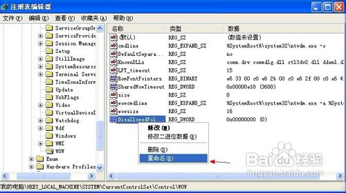 右击“新值 #1”,单击“重命名”,输入“DisallowedPolicyDefault”,按回车键