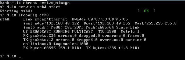 2.启动sshd服务,查看eth0获取的ip地址,然后用ssh secure shell 连接。