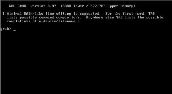 GNU GRUB version 0.97 (640K lower / 3072K upper memory)