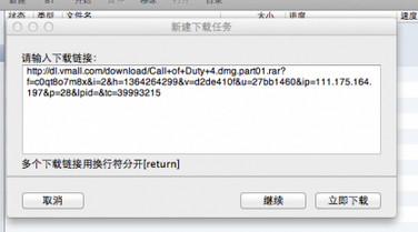 点击右下角 立即下载 就可以正常下载了 (注意一下,下载的文件名被迅雷修改了,这是MAC版迅雷的一个BUG,偶尔会导致分卷压缩包无法解压的问题,所以你可以这时候复制网盘上的文件原名修改,也可以等下载好之后在修改。)