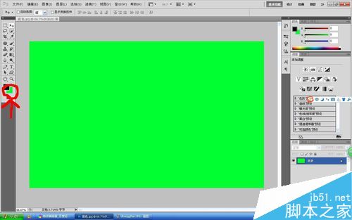 5、设置背景内容,背景内容也就是画布的底色,就像你要画画要选择底色一样,分为白色、透明色、背景色,背景色就是ps左下角,有个可以选择的两个色框,下面的那个就是底色,这里因为我选择的是背景色,底色为绿色,所以创建出来的图片也是绿色的。