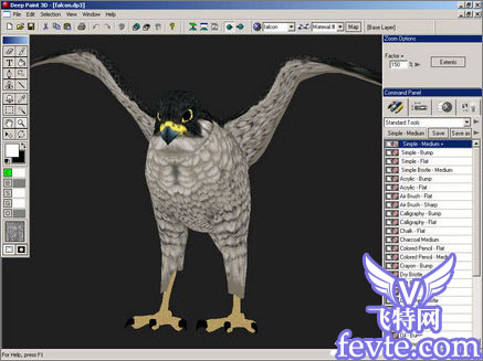 给雕贴图有点难。因为我必须要把整个身体都画上毛,但是我没有任何参照物。所以,我再次利用了deeppaint3d搞定。翅膀必须用两个贴图,由于受光,翅膀下面的要亮一些,翅膀上部要暗一些。