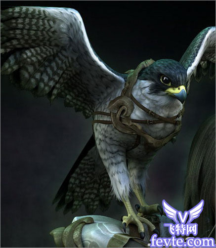 刚开始我想把海伦娜的宠物设计成一只威武的老鹰,但是思考之后把它设计为一只雕,毕竟它不是主角,而且很多人在作品里面都用老鹰,不想重复。本来想让这只雕在空中飞行,但后来还是把它设计在海伦娜的肩膀上。