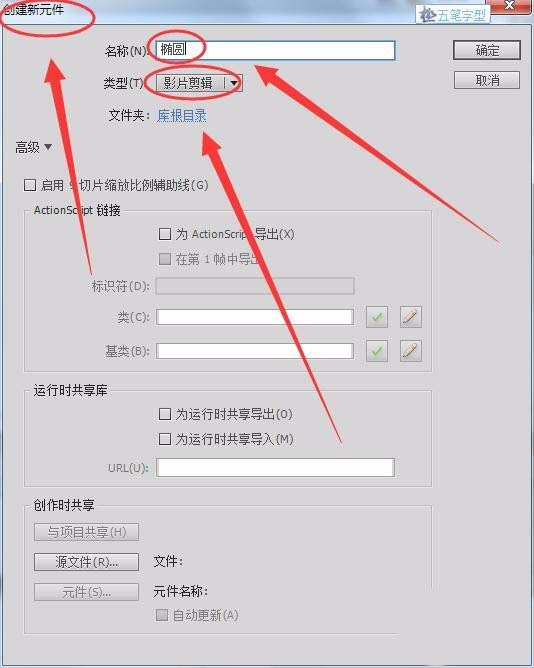 1、单击“插入”---->“新建元件”,在出现的“创建新元件”对话框中“名称”取名为“椭圆”,“类型”为“影片剪辑”,创建一个影片剪辑元件。
