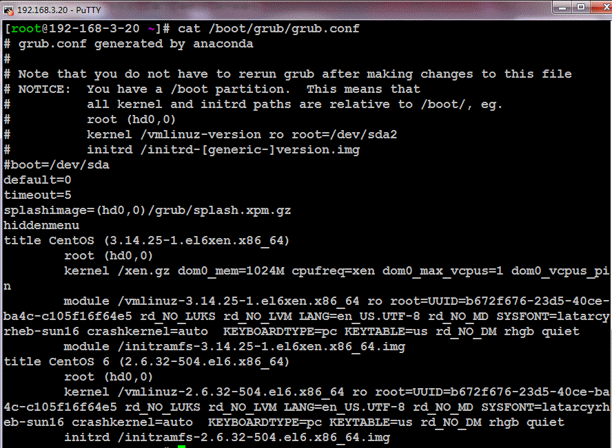 cat /boot/grub/grub.conf #如下图,下次是以xen内核启动