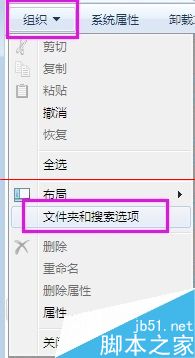 1、双击桌面上的【计算机】,点击左上角的【组织】,选择【文件夹和搜索选项】