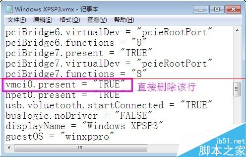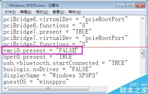 3、找到vmci0.present = "TRUE" ,将TRUE改为FALSE