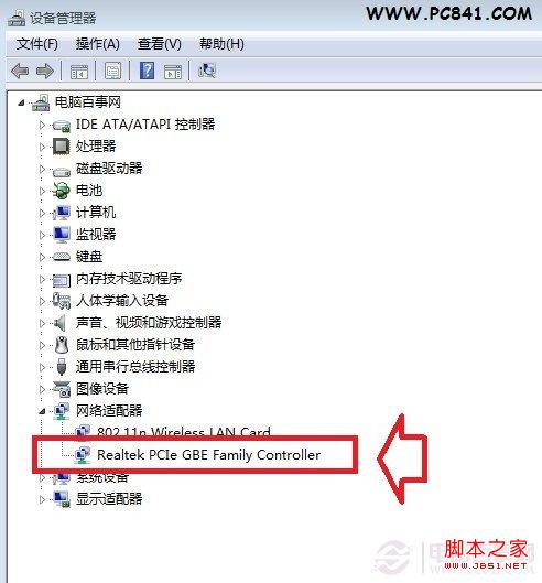 2.右键单击 计算机—属性—设备管理器,查看设备列表中的“网络适配器”至少有一项。如果没有,就说明系统没有检测到网卡。那就要检查网卡是没插好,还是出现故障了。如果网卡设备名称上出现黄色感叹号,则说明驱动不兼容,则需重新安装驱动。