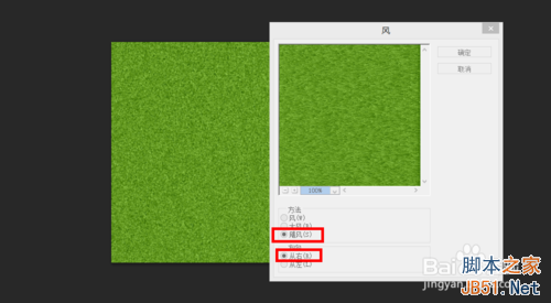 5、执行“滤镜——风格化——风”,在风的窗口里,我们设置风为“飓风”,方向为“从右”,如下图,最后点击确定;接下来我们执行“图像——旋转画布——90度(顺时针)旋转“。