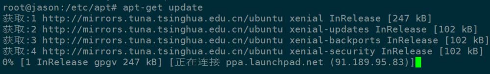 6、最后执行 apt-get update就可以了(因为刚才切换到root用户, 所以不用在命令前加sudo)