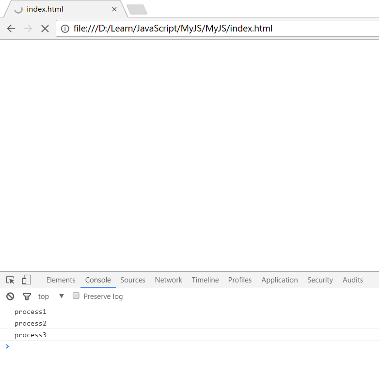 我们看到,不仅浏览器的标题栏不会转菊花了,控制台也很快就打印出 我们在代码最后面打印的语句,说明主干程序已经走完,数组的处理则定时执行着。