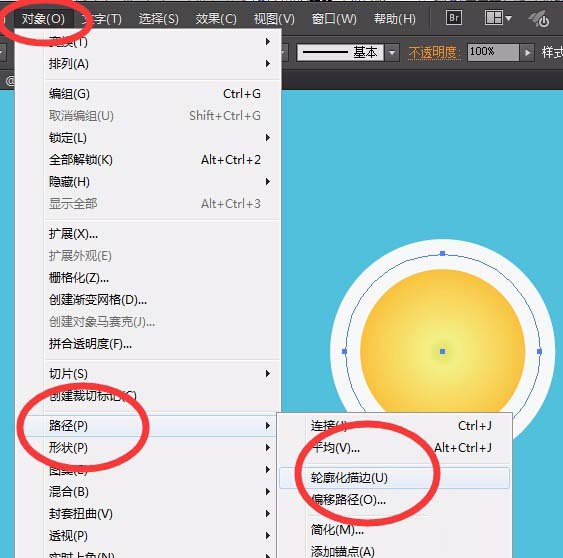 5、接着最关键的一步来了,我们选中描边,执行【对象】-【路径】-【轮廓化描边】,按shift + Ctrl +G 解除编组把描边抽取出来,效果如图