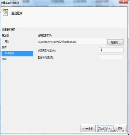 找到自动关机的shutdown.exe,并且在参数中填入“-s”