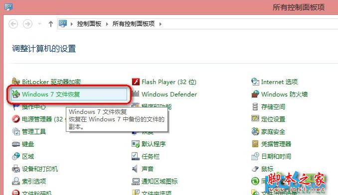 1. 打开Windows 8的控制面板,找到“Windows 7文件恢复”选项;