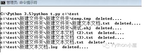 把上面的代码保存为t.py,然后打开命令提示符窗口,执行命令“Python t.py c:\test”,其中“c:\test”表示要清理的文件夹,如果有多个文件夹要清理的话,可以使用空格隔开。