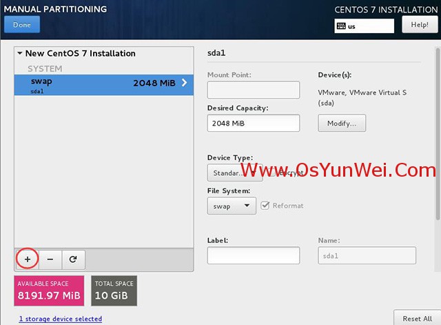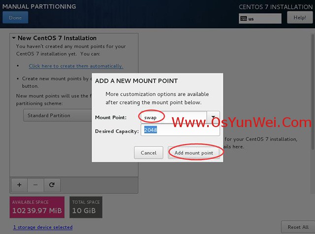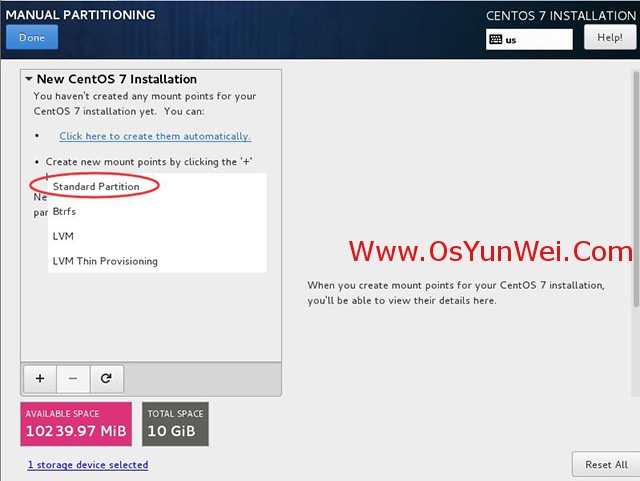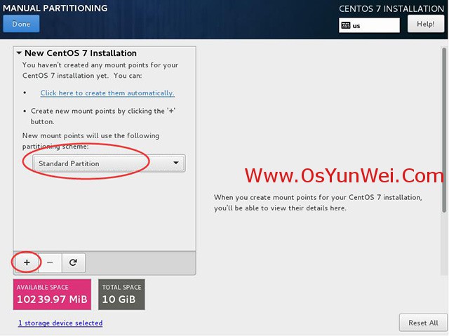 新挂载点使用以下分区方案:标准Standard Partition