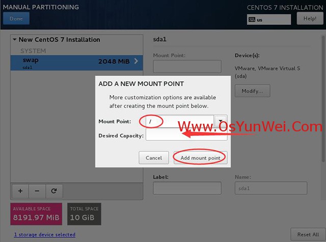添加挂载点,如下图所示