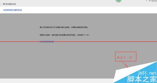 第三步、进入新界面后,在操作界面的左上角找到”颜色校准“,并点击进入后会提示你一些注意事项,看完注意事项后点击”下一步“,具体操作如图所示