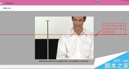 第五步、当你进入调整”对比度“的界面后。需要你拖动图中的滑块,是界面中的图像更加清晰,更加锐利。就ok了。然后点击”下一步“。具体操作如图所示