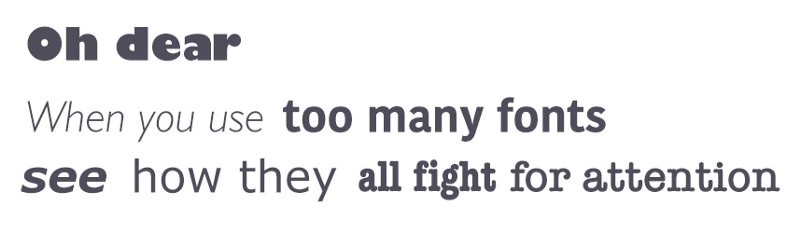 使用超过 3 种不同的字体使网站看起来非结构化和不专业,太多的类型尺寸和样式一次也可能破坏任何布局。