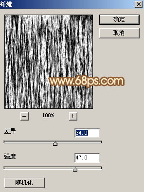 2、选择菜单:滤镜 > 渲染 > 纤维,参数及效果如下图。