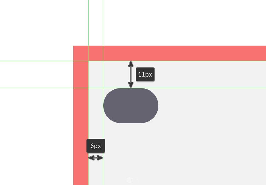 接下来,画一个58*6,#656370,圆角为3px的矩形,再画两个6*6,#656370的圆,按图示进行减去顶层操作