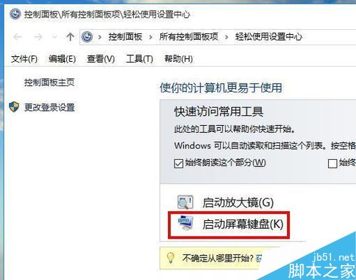 打开win10屏幕键盘方法之二: