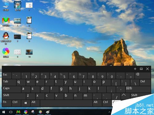 用鼠标左键点击任务栏上的触摸键盘按钮图标,触摸键盘即刻显示在桌面上。
