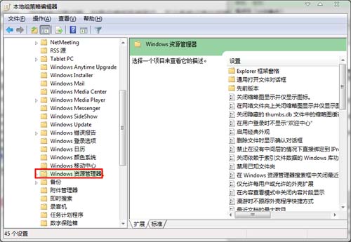 2、在左侧的列表中,打开用户的配置→管理模板→Windows 组件→Windows资源管理器。